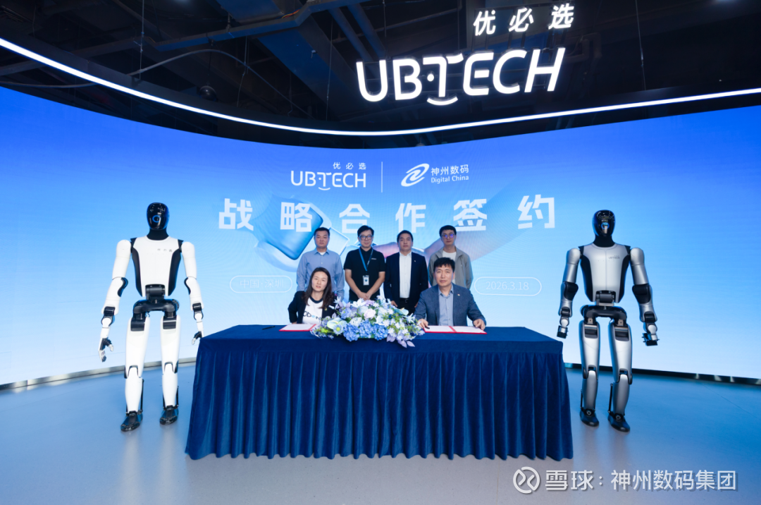 3月18日,神州数码与优必选科技正式签署战略合作协议。神州数码DCN成为优必选科技首家教育生态高级合作伙伴,双方将共同推动数亿级具身智能机器人业务合作。同时双方将围绕人形机器人课程体系构建、实训基地建设、具身智能领域人才培养等领域开展深度合作。