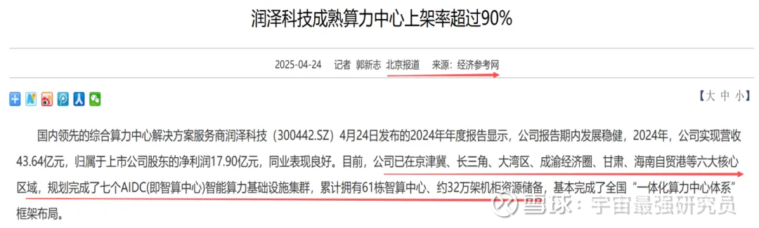 龙头四:润泽科技 (300442.SZ):AIDC稀缺资源提供商