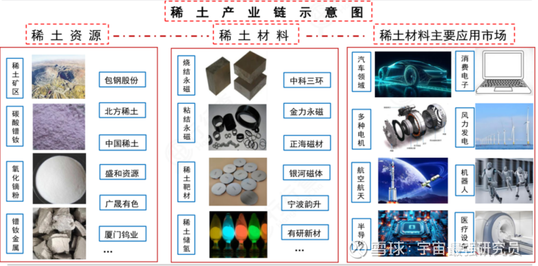 今天黄金板块继续暴涨,稀土板块也被带了起来。稀土是我国重要的资源,美国进口的稀土中77%来自中国,未来的前景与需求是非常巨大的。今天我将用通俗易懂的语言带大家看懂稀土永磁产业链以及其中的核心玩家。