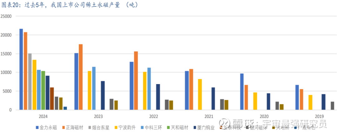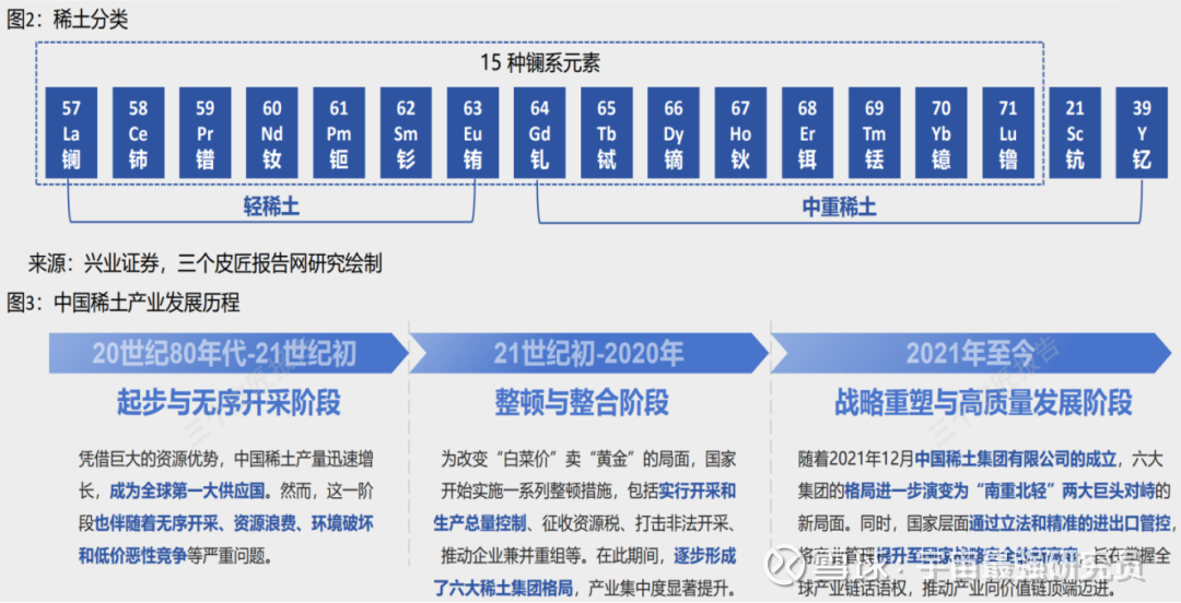 (1)北方岩矿型(轻稀土为主):主要集中在内蒙古的白云鄂博矿。你可以把它想象成一座巨大的宝山,稀土和其他矿物混杂在一起,需要用大型机械开采。这个环节的代表,就是大名鼎鼎的北方稀土(600111),它背靠包钢股份(600010),几乎掌控着全球轻稀土的命脉。轻稀土(如镨、钕)是制造钕铁硼磁铁最主要的原材料。