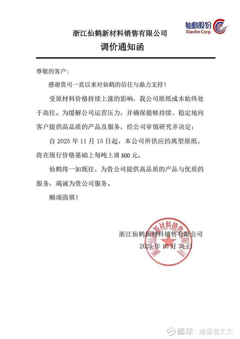 今年能落地的涨价函。看来仙鹤还是放过了五洲
