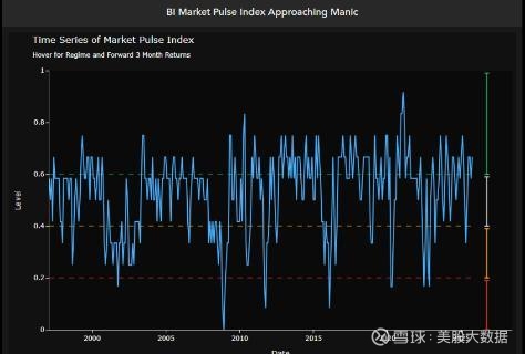 彭博行业研究的市场脉搏指数,作为衡量市场广度、个股相关性等因素的指标,已连续保持在“狂热”区间。历史数据显示,处于此区间时,罗素3000指数在随后三个月内平均仍能上涨约9%,但分析师仍将其视为一个“非常早期的预警信号”。