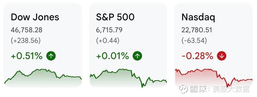 最终收盘,道指收涨0.51%,报46758.28点,连续第四日创收盘历史新高,本周累计上涨1.10%。标普500指数收涨0.01%,报6715.79点,连续第三日收创新高,本周累计上涨1.09%。纳指未能延续涨势,收跌0.28%,报22780.506点,结束了其强势上涨势头,不过本周仍累计上涨1.32%。
