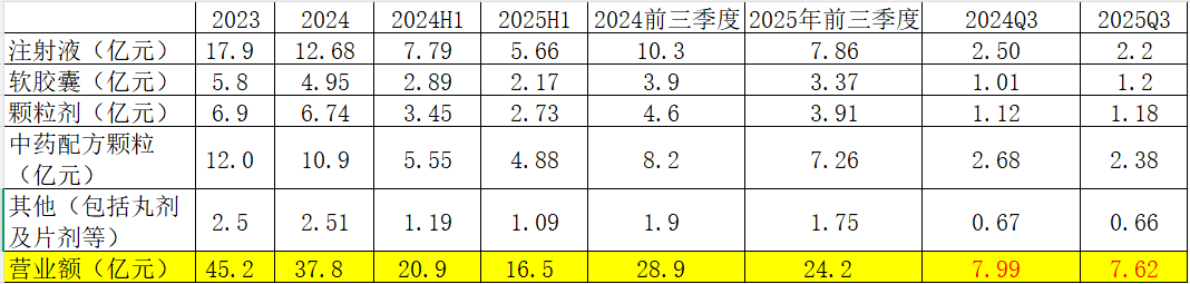 根据公司公布的2025年前三季度营业数据,2025Q3营业额7.62亿元,同比只下降5%,说明中药集采对公司业绩的负面影响在减弱。