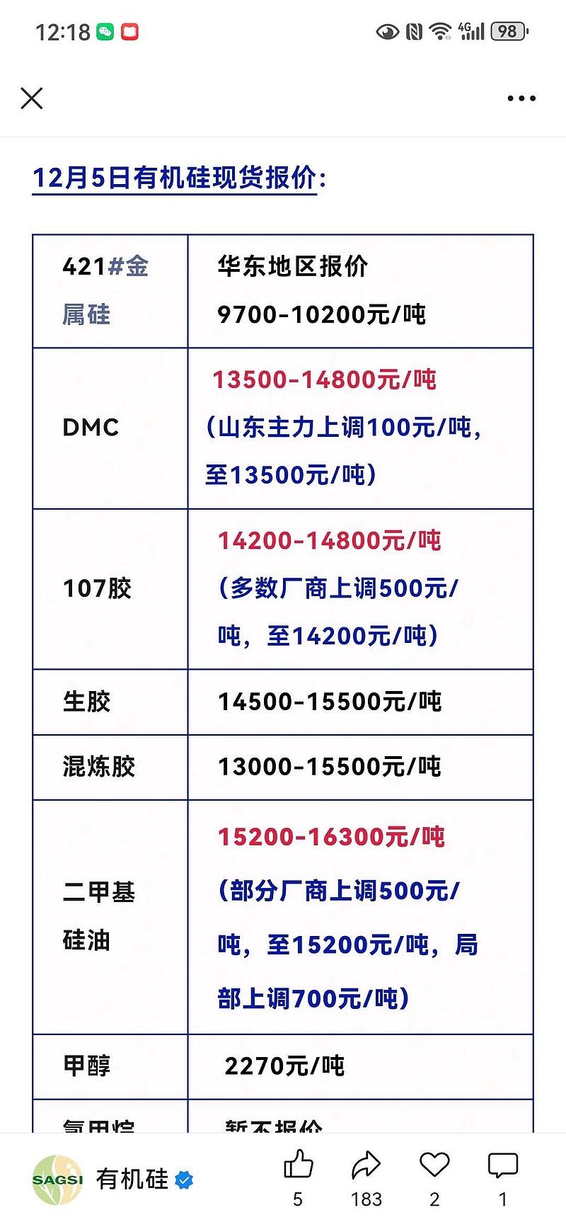 有机硅单体和下游产品一起涨价,有机硅企业不仅有单体还有下游产品,受益很大,已从亏损转变为大幅盈利。