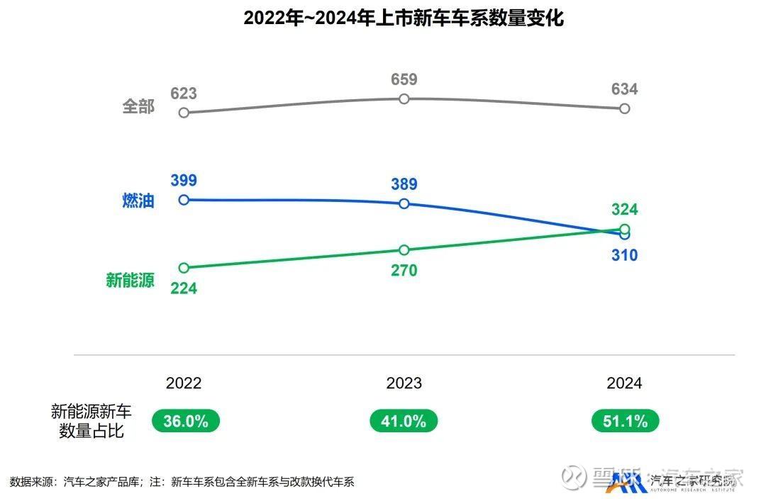 反观燃油车市场,新车数量急剧下滑,全新车更是少之又少,占比不足7%。在这样低频的“上新”速度之下,燃油车的市场衰退显得更加不可逆转。