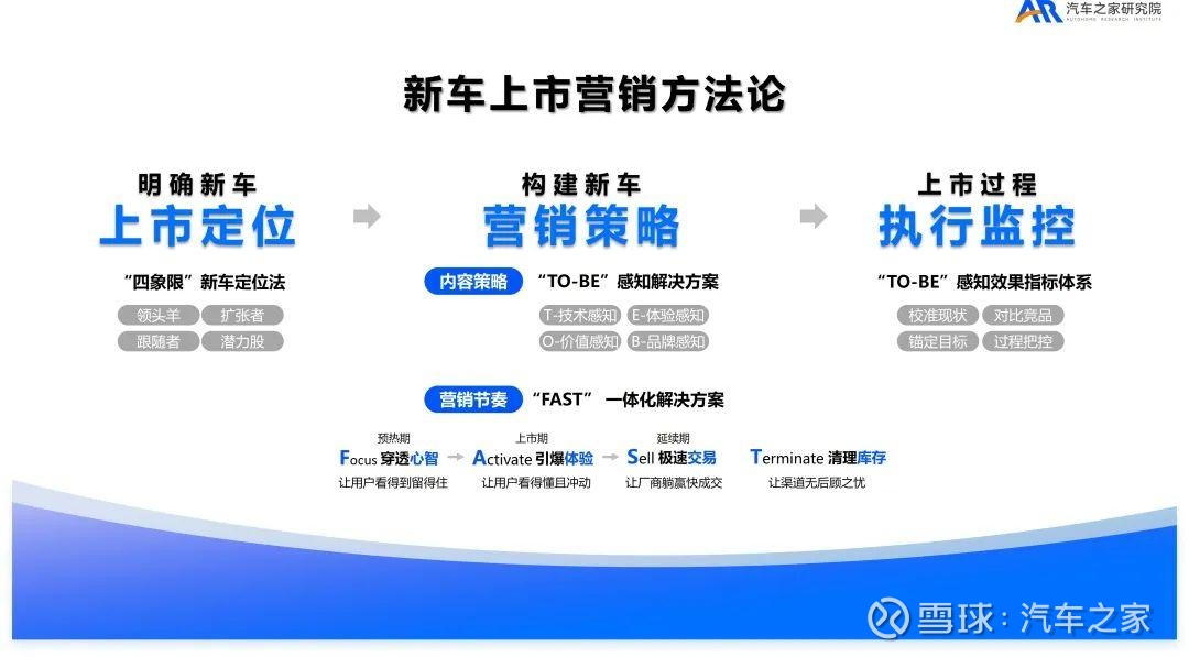 汽车之家基于多年新车营销经验,推出新车上市营销方法论,提出“明确新车上市定位”、“构建新车营销策略”、“上市过程持续监控”三步法: