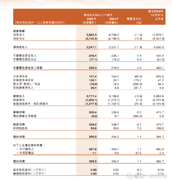 截至2025年6月30日,该行的总资产为4274.82亿元,较上年末增加3.1%;客户贷款及垫款总额(含应计利息)为2419.06亿元,较上年末增加4.5%;不良贷款率为1.85%,较年初减少0.08个百分点。客户存款总额(含应计利息)为3344.21亿元,较上年末增加4.1%。