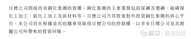 目标公司通过其投资持有于铜陵化学工业集团有限公司之间接权益。