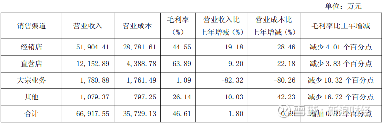 分渠道来看,经销店、直营店均实现高位增长,其中经销店营收5.19亿元,同比增长19.18%;直营店营收1.22亿元,同比增长9.20%。