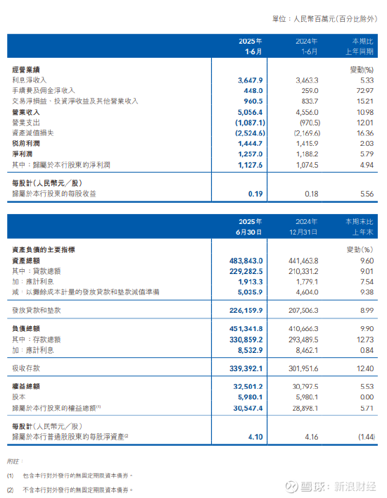 8月28日金融一线消息,威海银行在港交所公布的2025年中期业绩显示,今年上半年该行实现营业收入50.56亿元,同比增长10.98%;净利润12.57亿元,同比增长5.79%。截至6月末,该行资产总额为4838.43亿元,较2024年末增长9.60%。不良贷款率为1.39%,较2024年末下降0.02个百分点。
