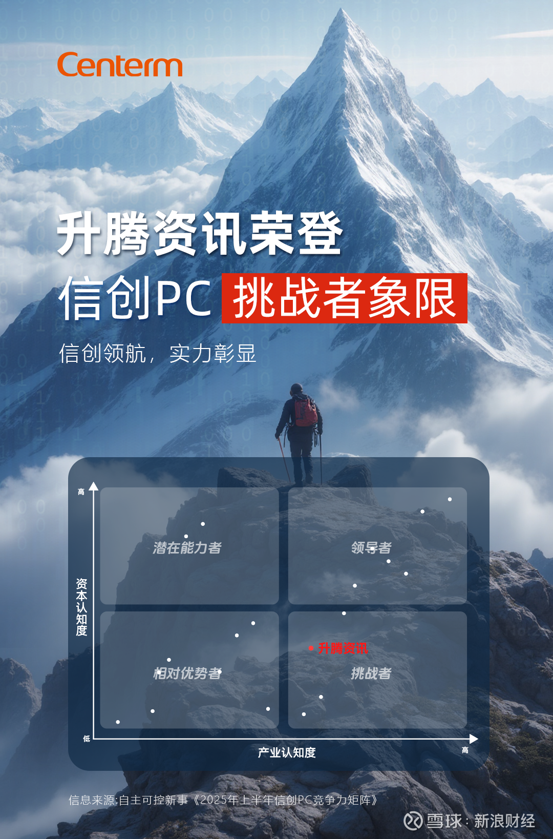 近日,“自主可控新事”发布了《2025年上半年信创PC竞争力矩阵》,星网锐捷旗下升腾资讯凭借在信创领域的突出技术优势及广泛实践,在信创PC市场脱颖而出,位居第二梯队,荣登《2025年上半年信创PC竞争力矩阵》挑战者象限!