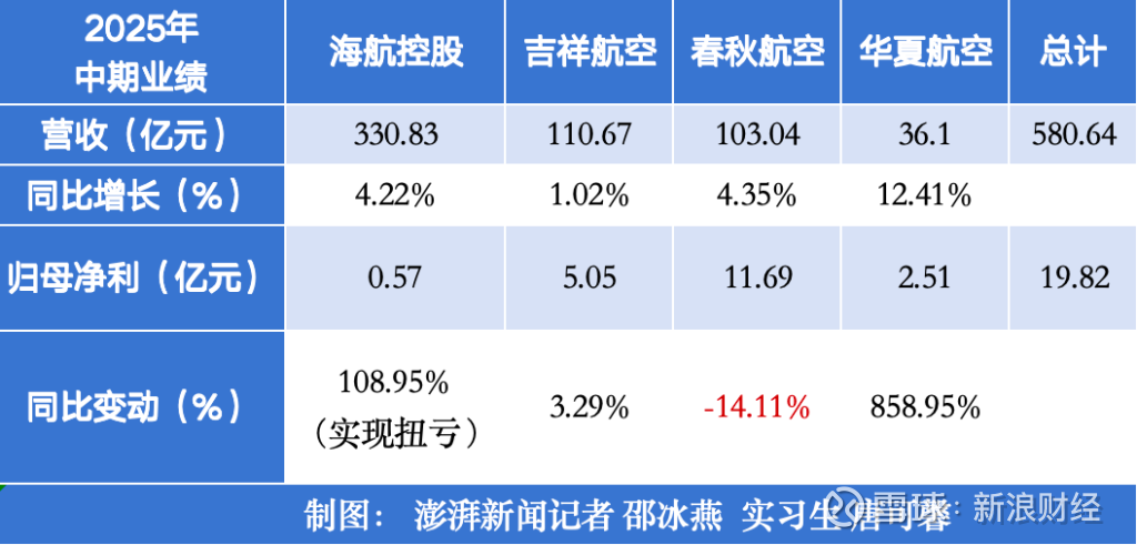 上半年春秋净利下滑,海航扭亏,华夏航空利润倍增