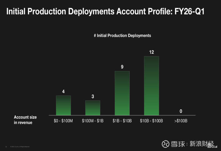 客户获取策略聚焦大型企业,大部分初始生产部署来自年收入10亿至1000亿美元的公司。生成式AI部署方面,联邦、国防和航空航天领域采用率最高(33.3%),石油和天然气、制造业、电信、建筑业各占16.7%。