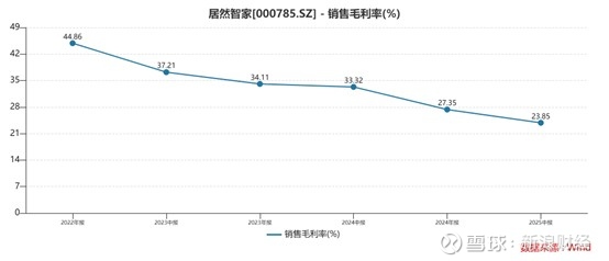 不过,收入规模的扩张并未带来盈利同步增长,反而拉低了整体毛利率。数据显示,居然智家当前商品销售业务毛利率仅约6%,且呈快速下滑趋势——对比2020年31.25%的毛利率水平,五年间降幅超八成。一边是占比超五成的低毛利业务,一边是占比收缩但毛利率近50%的传统业务,两者的盈利“剪刀差”直接导致居然智家整体毛利率大幅承压。
