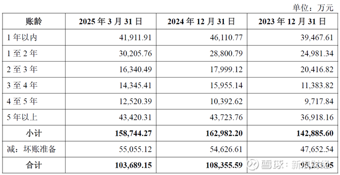 更严峻的是,市政院的应收账款账龄结构呈现 “倒挂” 态势 —— 长期应收账款规模远超短期应收账款,回收难度极大。截至 2025 年 3 月末,市政院应收账款原值总计 15.87 亿元,其中:1 年以内应收账款原值仅 4.19 亿元,占比 26.4%;5 年以上应收账款原值高达 4.34 亿元,占比 27.3%,规模超过 1 年以内应收账款;