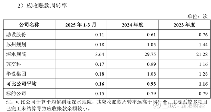 应收账款的高企与账龄老化,直接导致市政院的资金周转效率低下。2023 年、2024 年、2025 年一季度,市政院的应收账款周转率分别为 0.79 次、0.79 次、0.15 次,显著低于可比公司平均水平。