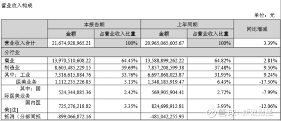 从细分来看,公司各项业务板块表现的都不理想。主要体现在医药商业“增收不增利”,医美双市场下滑。