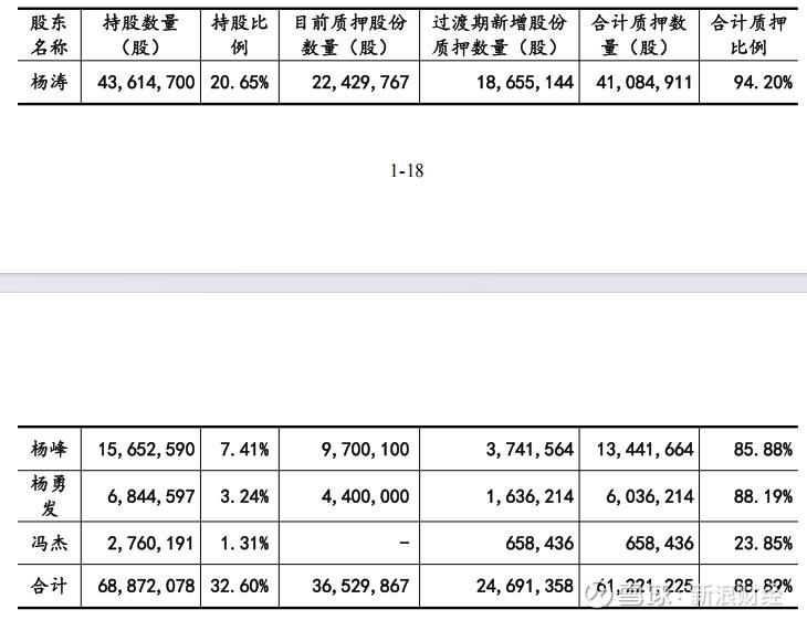 再次,大股东继续股份质押的融资方式也不再可行。截至目前,作为持股比例最多的实控人,杨涛持有公司股份的比例达20.65%,其中94%已被质押,另两名实控人也将手中近90%的股份做了质押。