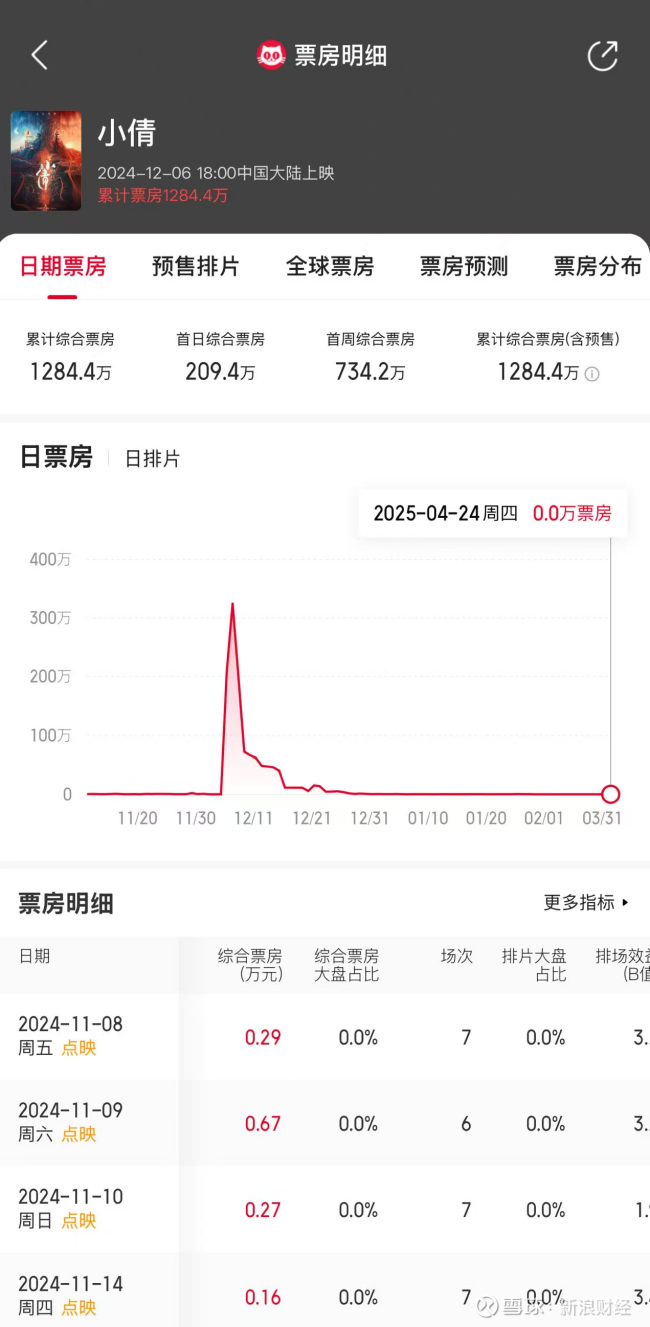 于去年12月6日上映的《小倩》相似,上映不久票房即断崖式下滑,陷入无人问津的境况。截至今年2月4日总票房1284.4万元,对光线传媒业绩贡献几乎可忽略不计。