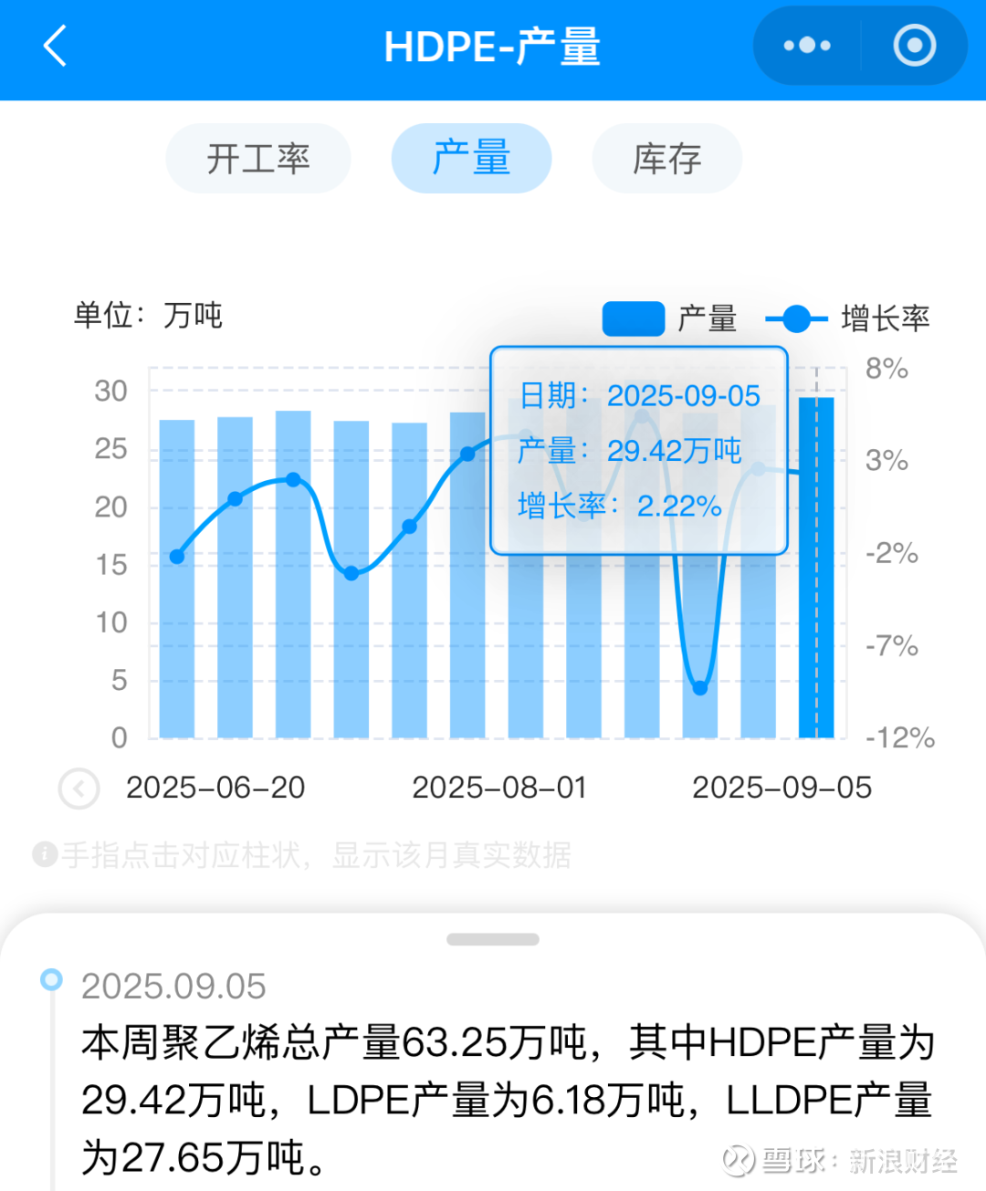 月初中化泉州、吉林石化等装置计划重启,加上裕龙石化、吉林石化等新投产能持续放量,埃克森美孚惠州LDPE本月也有投产预期。产能利用率回升在80%以上,9月PE产量在63.25万吨,较上周增加2.37%,供应越增越多。