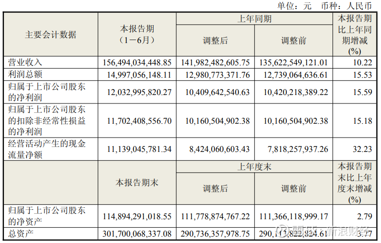 2025 年上半年,公司实现归属于母公司股东的净利润 120.33 亿元,较2024 年同期增长15.6%;实现扣除非经常性损益后归属于母公司普通股股东的净利润 117.02 亿元,较2024 年同期增长15.2%。