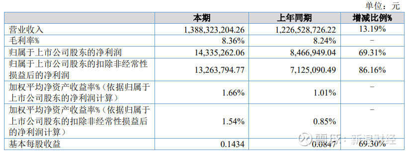 今年上半年,公司营业收入达到约1.14亿元,同比增长约28.4%。公司权益股东应占净利润达到约0.25元,同比增长约16.2%,营业收入和净利润同时实现显著增长。