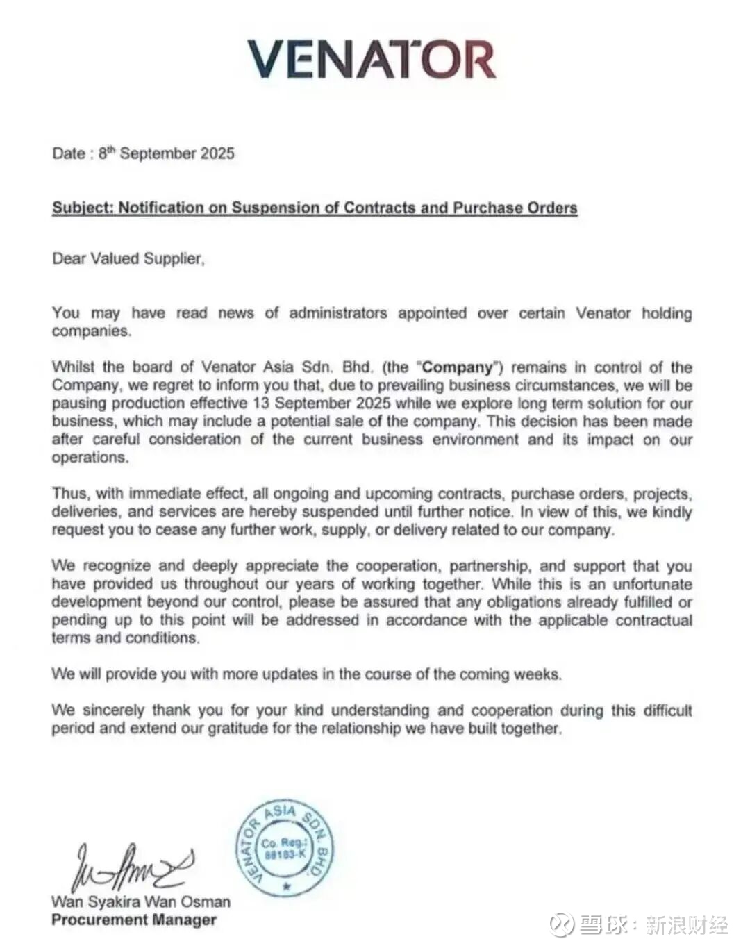 与此同时,泛能拓亚洲公司Venator Asia Sdn. Bhd.宣布,鉴于目前商业环境,泛能拓亚洲工厂将自9月13日暂停生产。公告称,尽管Venator Asia Sdn. Bhd.(以下简称 “公司”)的董事会仍控制着公司,同时为业务探索长期解决方案,其中可能包括公司的潜在出售。这一决定是在仔细考虑当前商业环境及其对公司运营的影响后做出的。因此,即刻生效,所有正在进行和即将进行的合同、采购订单、项目、交付和服务均暂停,直至另行通知。鉴于此,公司恳请客户停止公司相关的任何进一步工作、供应或交付。并表示,在未来几周内,公司将为客户提供更多最新消息。