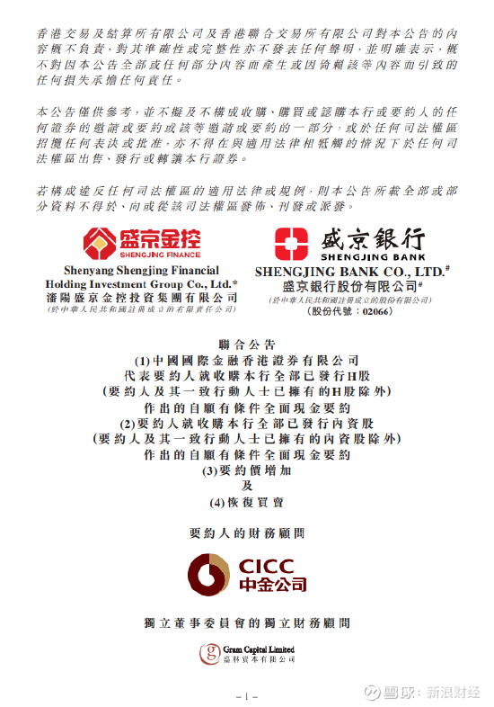 9月12日金融一线消息,盛京银行与沈阳盛京金控投资集团有限公司联合公布,为了就股东接纳提供更大财务激励,提升本次要约的成功概率,要约人将把初始H股要约价由每股H股港币1.32元增加至每股H股港币1.60元,相当于每股H股提高港币0.28元。最终H股要约价港币1.60元较最后交易日联交所所报收市价每股H股港币1.14元溢价约40.35%