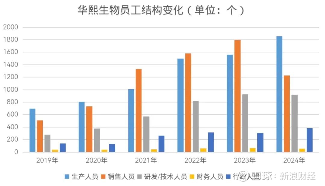 从2024年报的人员结构调整来看,华熙生物主要裁减的是销售员工,生产人员反而有所增加。在今年年中华熙生物与巨子生物的所谓“商战”中,华熙生物始终强调公司重视科研,重视产品本身能被科学实验证明的功效。