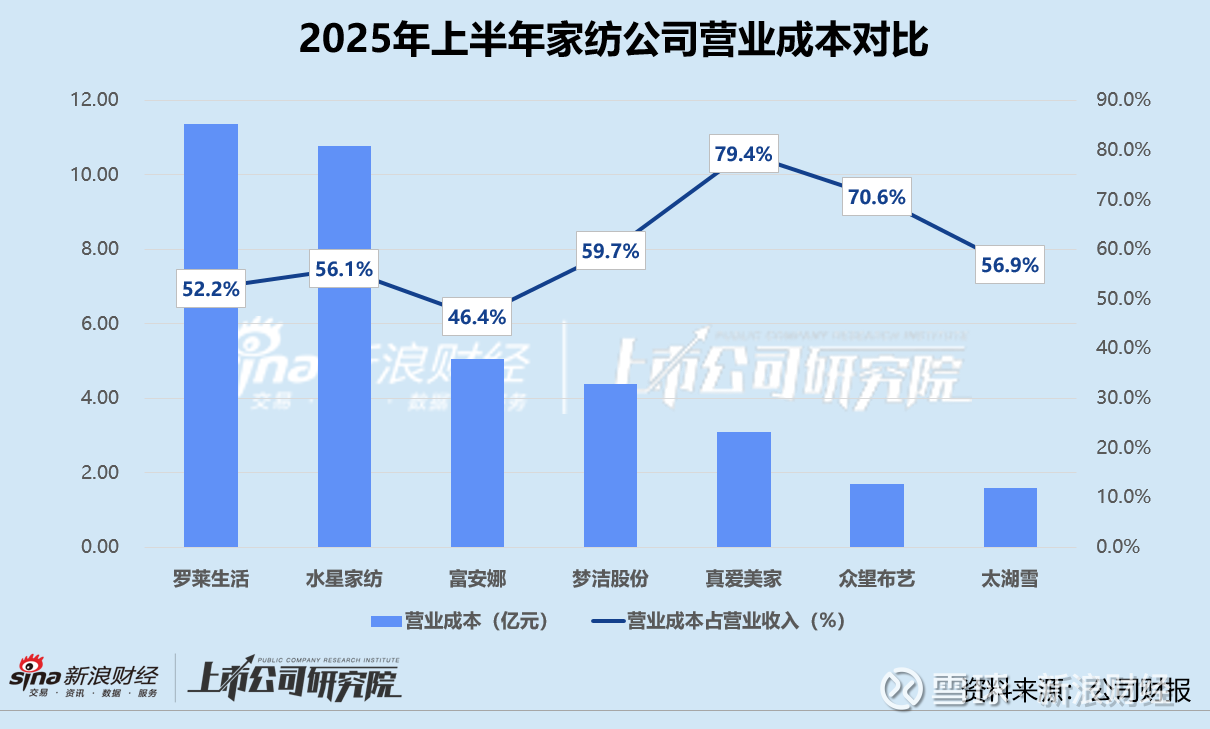 就成本控制而言,家纺公司上半年的营业成本普遍随着业务扩大走高,只有富安娜、梦洁股份缩减成本。罗莱生活同样以11.38亿元成本位列第一,比第二名水星家纺多约6000万元。众望布艺受关税政策影响,成本不降反增8.2%,其中境外营业成本由1.29亿元上涨至1.34亿元。