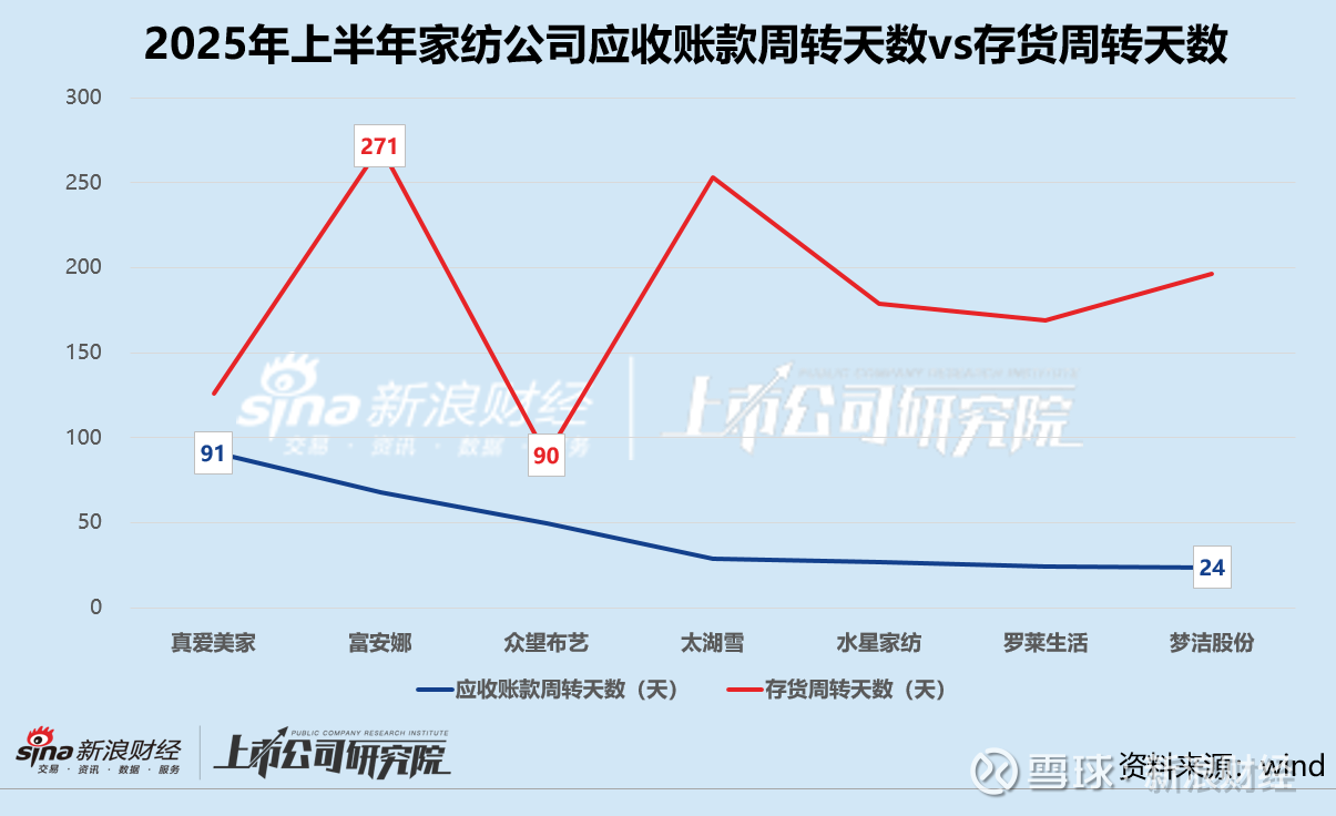 真爱美家应收账款周转天数达91天,约为第二名富安娜的1.34倍。太湖雪和罗莱生活应收账款周转天数较2024年同期分别下降27.1%、28.6%,双双降至30天以内。业绩公告显示,报告期内太湖雪强化应收账款回收效率及周期管控,整体规模较期初减少844.61万元。而罗莱生活账龄在1年以上的应收账款,由期初的1.23亿元骤降至7106.49万元。富安娜应收账款周转天数同比提高55.1%至68天;存货周转天数同样增幅最高,比2024年上半年增长16.8%达271天。公司存货之中,库存商品占比超80%,账面余额较期初净增加1680.68万元。