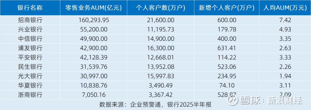 随着金融业零售转型的持续深化,个人金融业务凭借其“轻资本、高粘性、稳收益”的特性,已成为银行调整业务结构、构建差异化竞争优势的重要抓手。本文基于个人金融资产(AUM)、客户规模、新增客群及人均资产等关键指标,对招商银行、兴业银行、中信银行等9家上市股份制银行的个人金融业务发展现状进行拆解,并探寻行业竞争逻辑与发展方向。