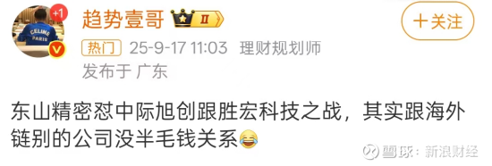 另一位财经博主@趋势壹哥 则直言:“东山精密怼中际旭创跟胜宏科技之战,其实跟海外链别的公司没半毛钱关系。”