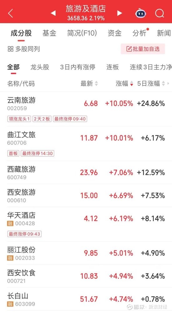 旅游股上涨