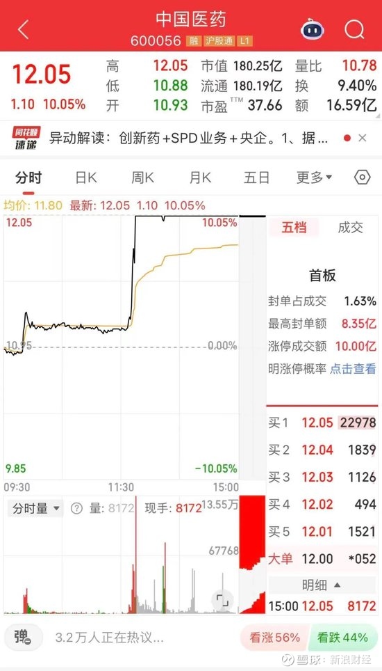 中国医药直线涨停