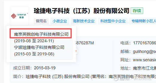 琻捷电子是在2024年11月由南京英锐创电子科技有限公司(以下简称“南京英锐创”)更名而来,当时名字中也有“英锐创”三个字。