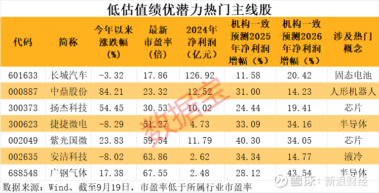 7只低估值绩优潜力热门主线股出炉