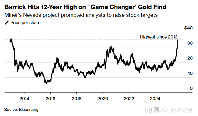 这促使分析师们上调了对Barrick Mining的价格预测。TD Cowen分析师Steven Green称Fourmile项目是一个“游戏规则改变者(game changer)”。这一对Fourmile项目的利好更新发布之前,Barrick Mining在马里、巴布亚新几内亚和巴基斯坦的项目遭遇中断,加上高企的成本,拖累了其估值。Steven Green表示:“我们认为,鉴于近年来股价表现不佳,该股在估值上仍有显著追赶空间,而Fourmile项目改善了公司的故事线。”