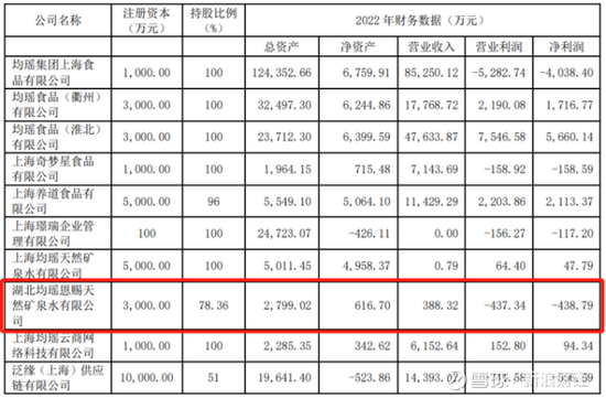 财报显示,2021年上海均瑶和湖北均瑶恩赐公司(前身为湖北三座山饮品有限公司,下文简称为“湖北均瑶恩赐”)分别亏损89万元和333万元;2022年上半年,上海均瑶扭亏为盈,净利润22.65万元,但湖北均瑶恩赐亏损246.67万元。