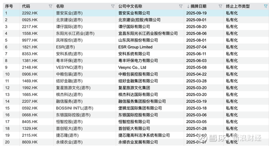 值得注意的是,港股公司私有化的案例并不少见,证券时报记者统计发现,今年以来已有20家港股公司以私有化的方式退市。
