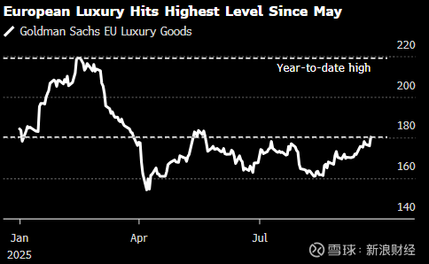 高盛奢侈品股篮子指数上涨2.4%,至五月以来最高。