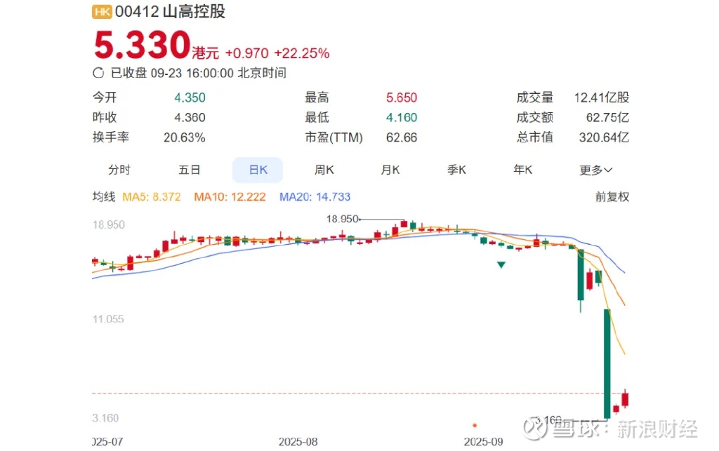 9月23日,主营“绿电+算力”的山高控股,又高涨22%。此前两个交易日,其先大跌76%,再涨30%。