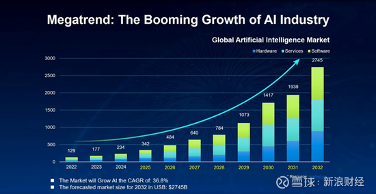 图表2:全球AI市场规模高速增长,预计2032年达2.75万亿美元