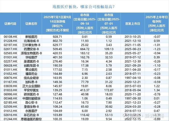 今年下半年,港股医药板块宛如一匹脱缰野马,上演了一场波澜壮阔的 “狂欢”。新锐医药(06108.HK)涨超 900%,北海康成 - B(01228.HK)、三叶草生物 - B(02197.HK)涨幅突破 600%,板块内超七成个股上涨,21只股票翻倍。