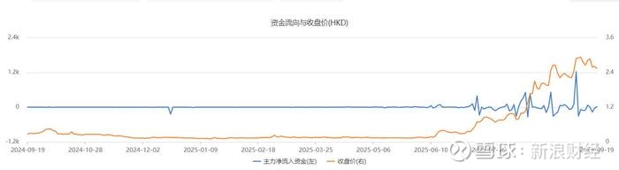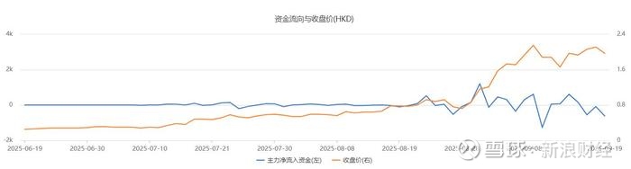 该股于2021年上市,在今年7月以前几乎无资金关注。自7月11日起,主力资金开始活跃,单个交易日买入金额少则二三十万港元,多则一两百万港元。进入9月,有6个交易日主力资金单日买入金额超过1000万港元。其股价从7月1日的0.29港元/股一路涨至9月18日的2.11港元/股,市值从3.76亿港元涨至27.37亿港元。