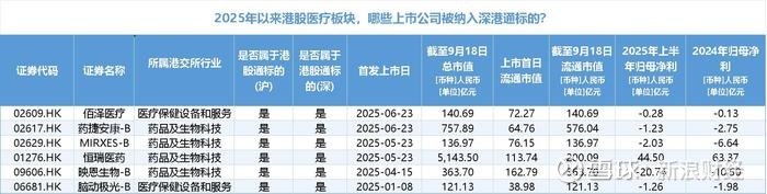 根据界面新闻统计,除药捷安康外,佰泽医疗(02609.HK)、MIRXES-B(02629.HK)、恒瑞医药(01276.HK)、映恩生物-B(09606.HK)、脑动极光-B(06681.HK)这5家医药企业在今年上市后不久就被纳入港股通标的。