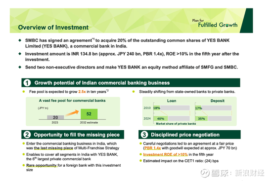 对于本次收购,SMBC在2025年5月发布的《对YES银行的投资报告》中明确指出,该投资被视为“填补缺失环节的机会”。SMBC认为,进入印度的商业银行业务是其多品牌特许经营战略的最后一块拼图。通过YES银行——印度第六大私人商业银行,SMBC能够覆盖印度的所有细分市场。