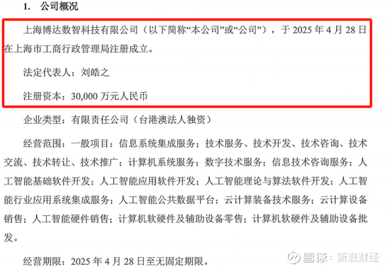 公告显示,博达数科成立于2025年4月28日,成立时间尚不足半年,唯一股东为周大福投资,该公司注册资本3亿元,实缴资本1.95亿元。博达数科的法定代表人、董事、财务负责人为刘皓之,其同时担任ST景谷董事;博达数科监事同样由ST景谷监事林文刚担任。