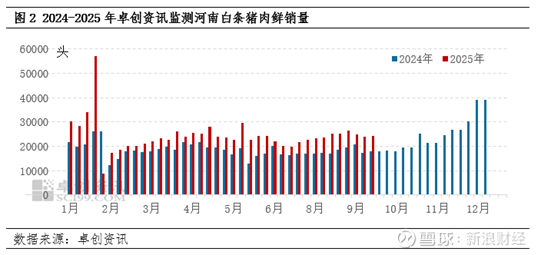 截至9月19日最新一期数据,河南白条鲜销量为24316头,较全年均值高约4.10%。且养殖成本端角度来看,9月前期压栏的社会场开始出猪,进一步增加了市场的供应量。伴随着价格不断破前低,价格与量之间形成了负反馈闭环,加速了9月份价格的回落。